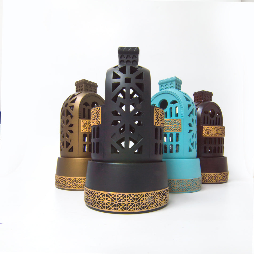 Bring a taste of the middle east and surround yourself with the relaxing aromas of Bukhoor with this Modern Arabian Polyresin Burner with a removable perforated tray for burning coal available in a range of colours.